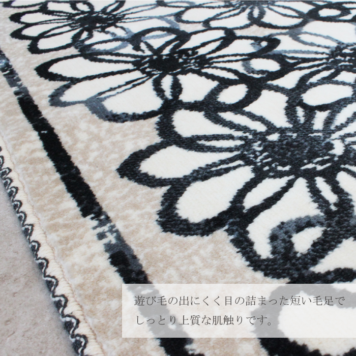 抜群の肌触りが自慢の日本製 玄関マット。アクリル梳毛を巧みに加工(レ―ジングポリッシャ―加工)する事で、遊び毛が出にくく、毛足に張りと弾力を持たせています。裸足で触れるととっても気持ちいい感触で上質感を味わえます。