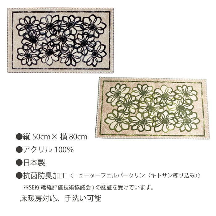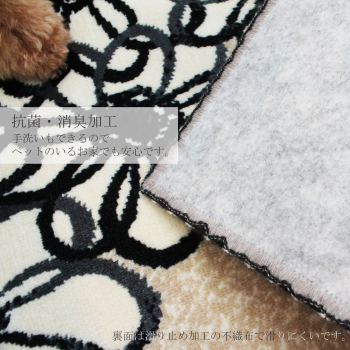 裏面滑り止め加工、手洗いOK、床暖房にも対応しています。