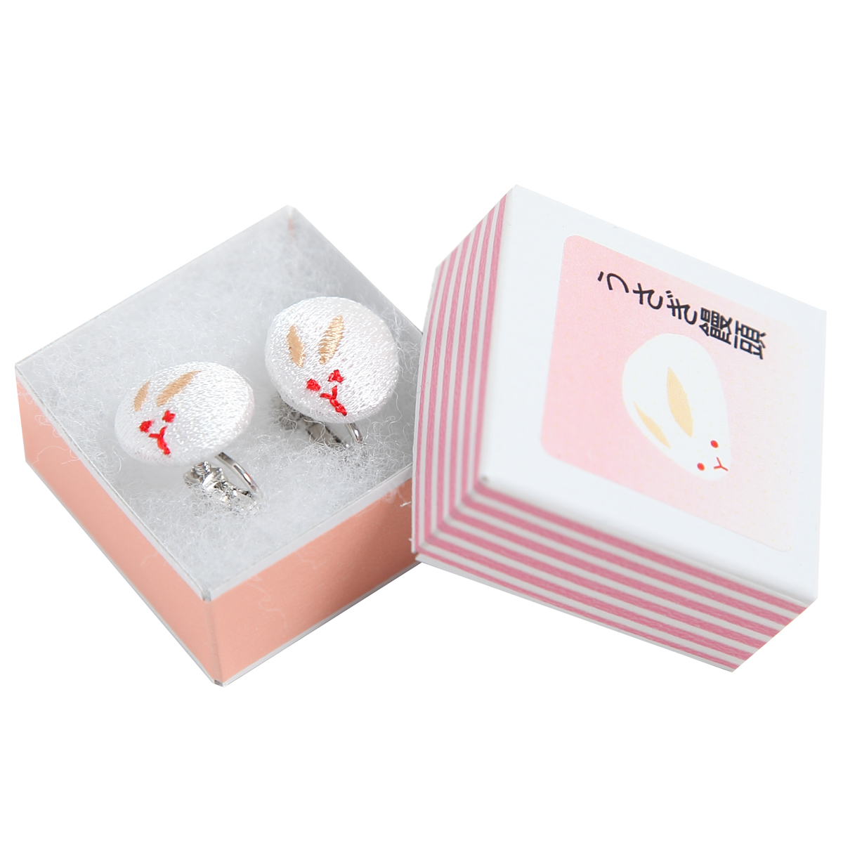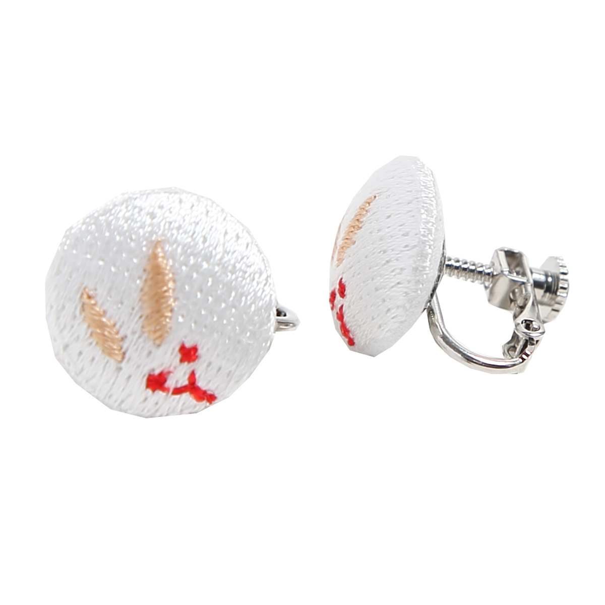 真っ白なうさぎにみたてた和菓子、うさぎ饅頭。総刺繍のイヤリングです。