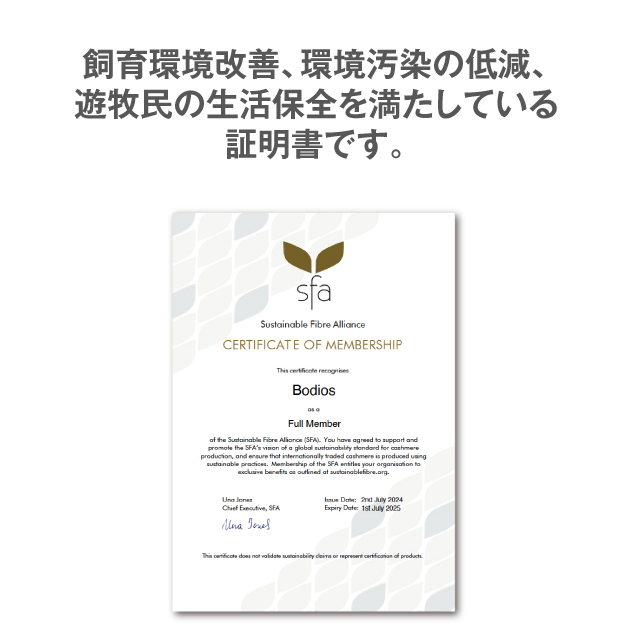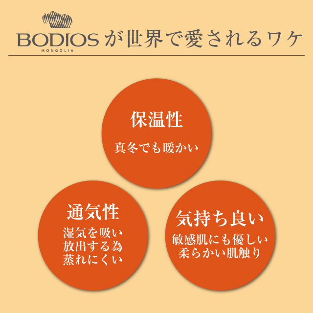 保温性が非常に高くカシミヤより約17%、メリノウールより約40%暖かいといわれています。
