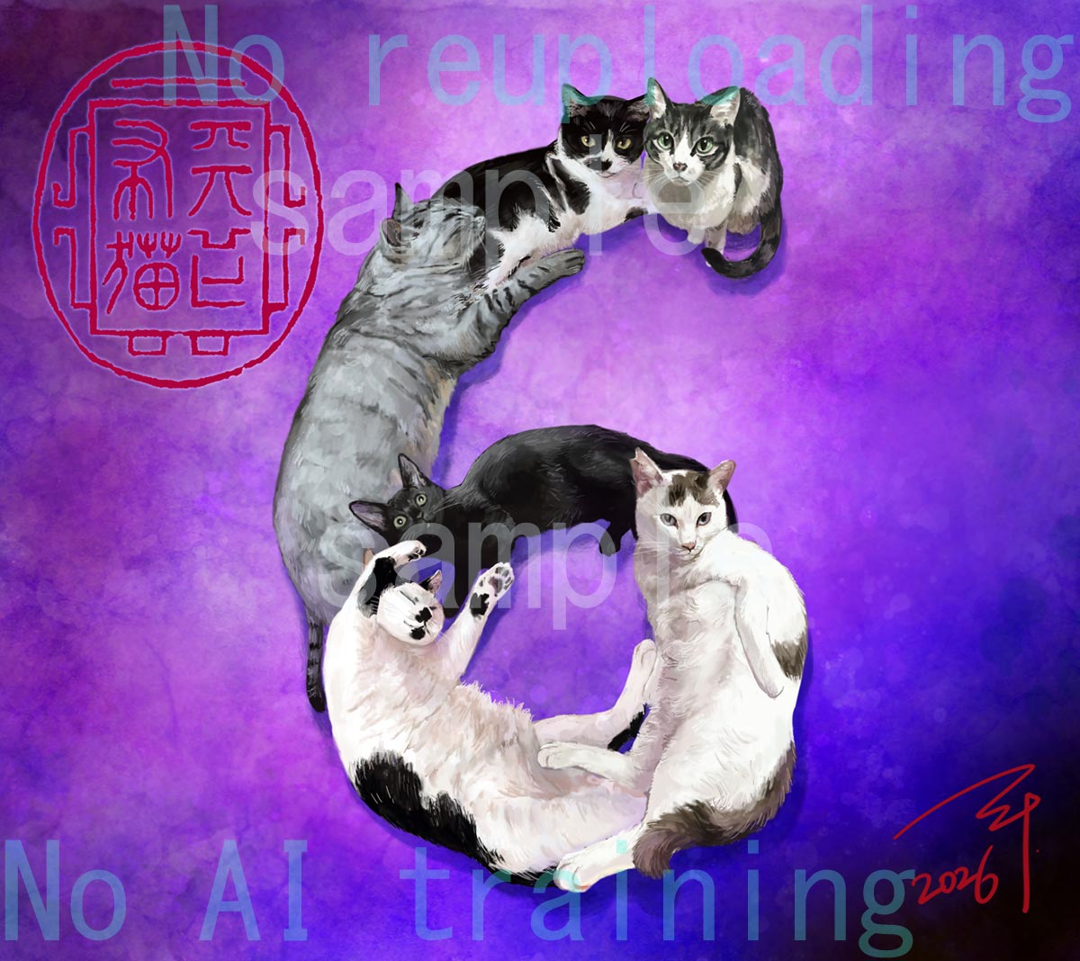 6頭で「6」を形どった優しく愛らしい猫文字デザインとなっております。