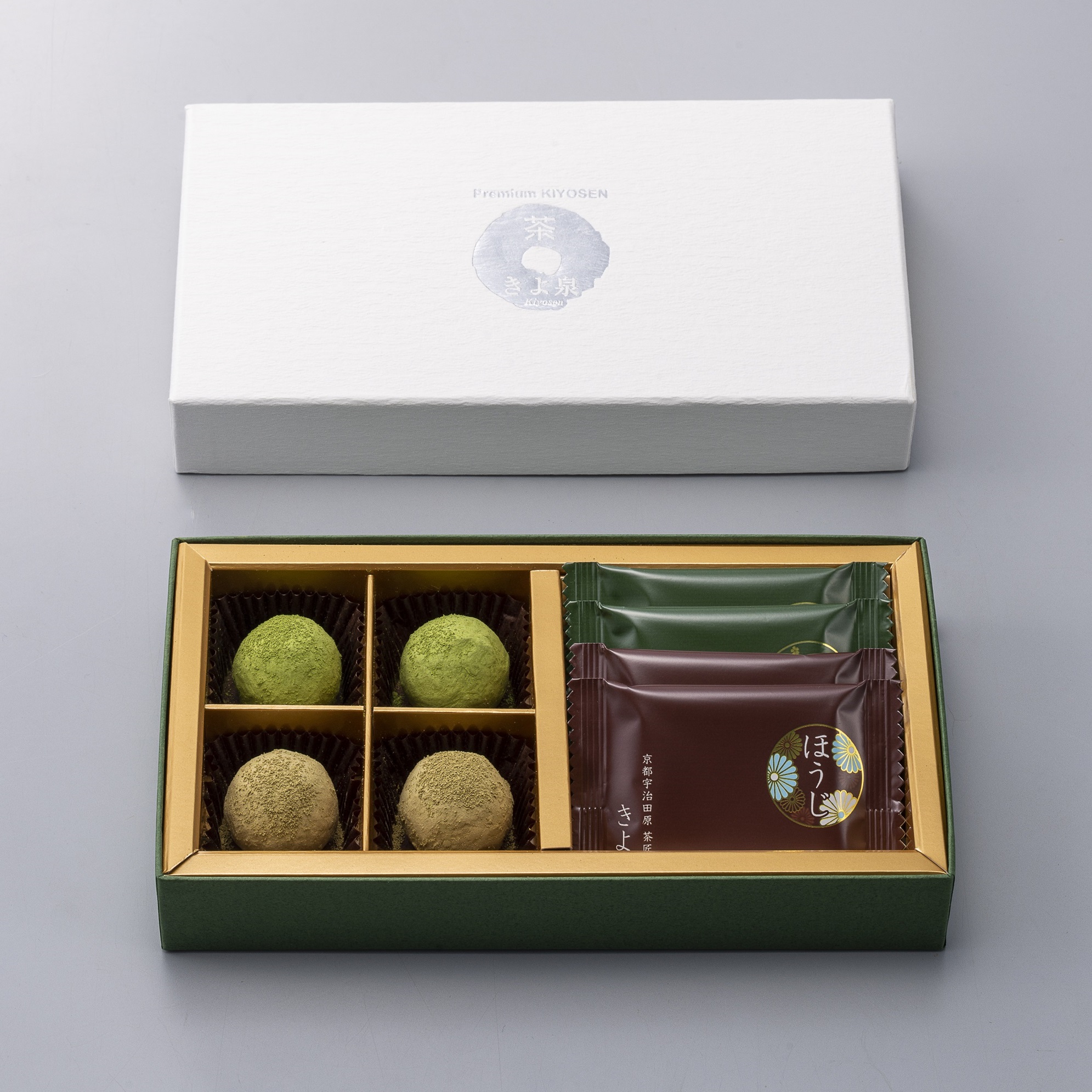 茶匠きよ泉の宇治抹茶・ほうじ茶トリュフチョコレートと板チョコセット