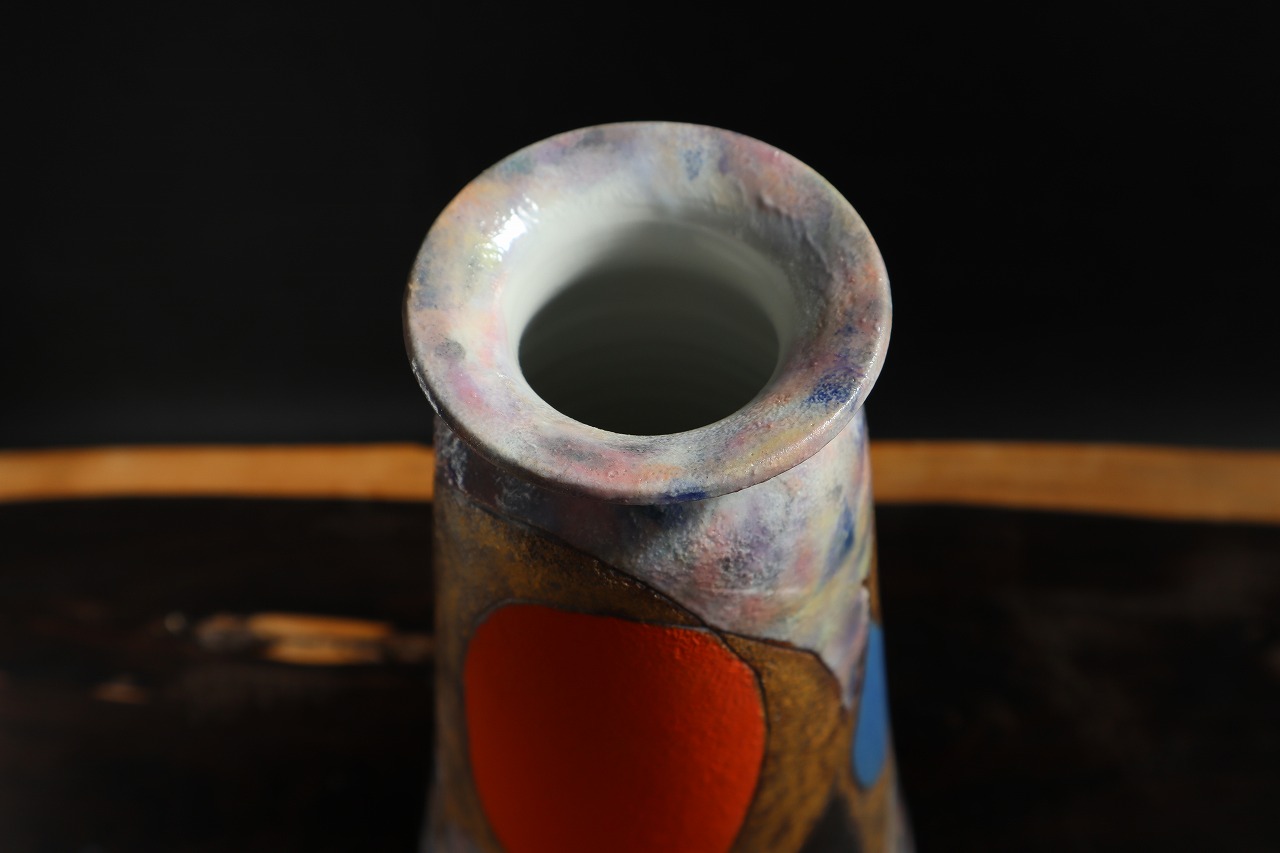 素焼き後、彩色部分をマスキングし彩磁彩色をいれます。