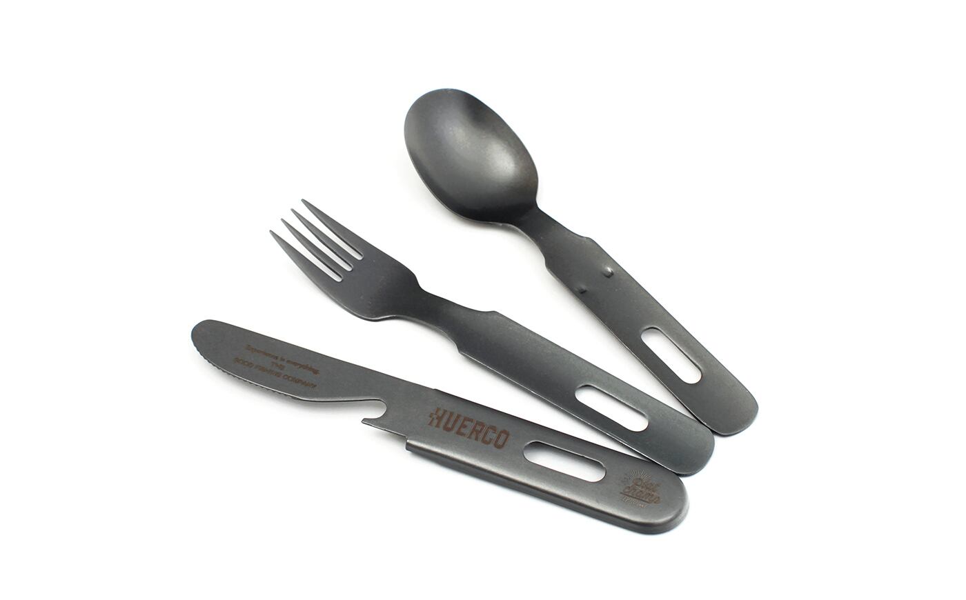 ステンレス素材にエイジング加工を施し、まるでアンティークのような風合いを持つカトラリーセットです。ナイフ(栓抜き付)とフォーク、スプーンが一つに収まり携帯性にも優れ、黒酸化発色により独特の黒色発色をお楽しみいただけます。