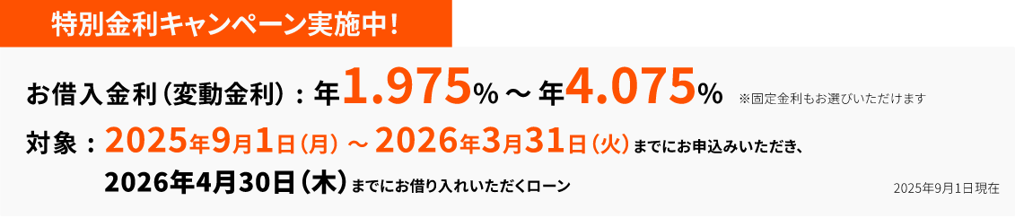 ※ 金利は毎月見直しを行い、金融情勢の変化などにより月中でも金利を変更させていただく場合がございます。