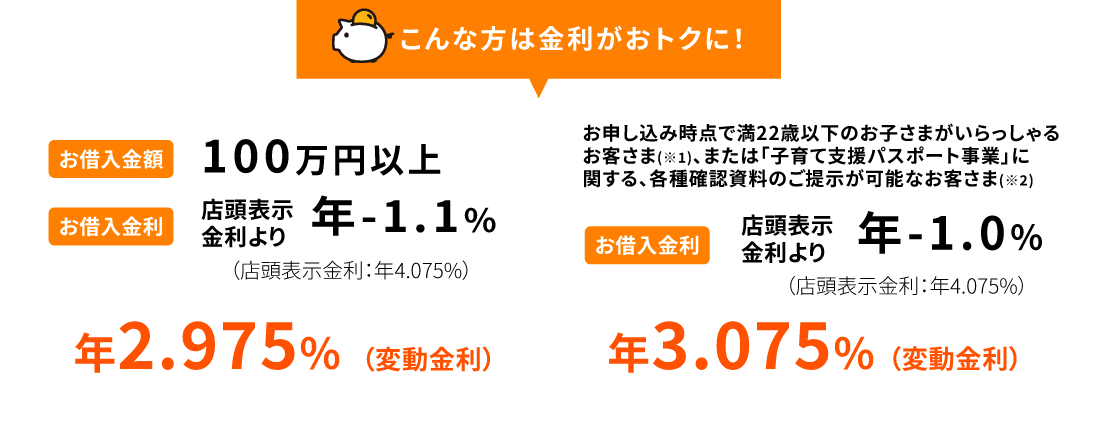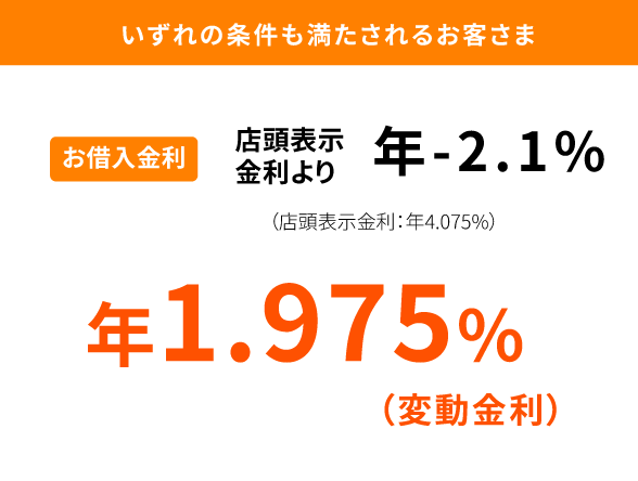 所定の条件を満たされる場合、金利が最大年2.1%おトクに!